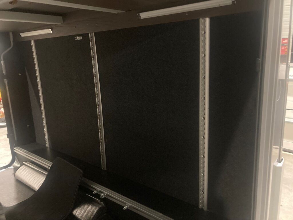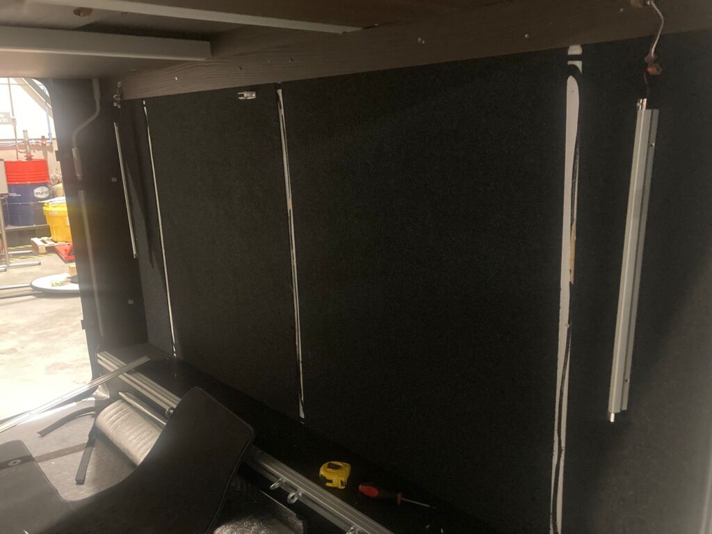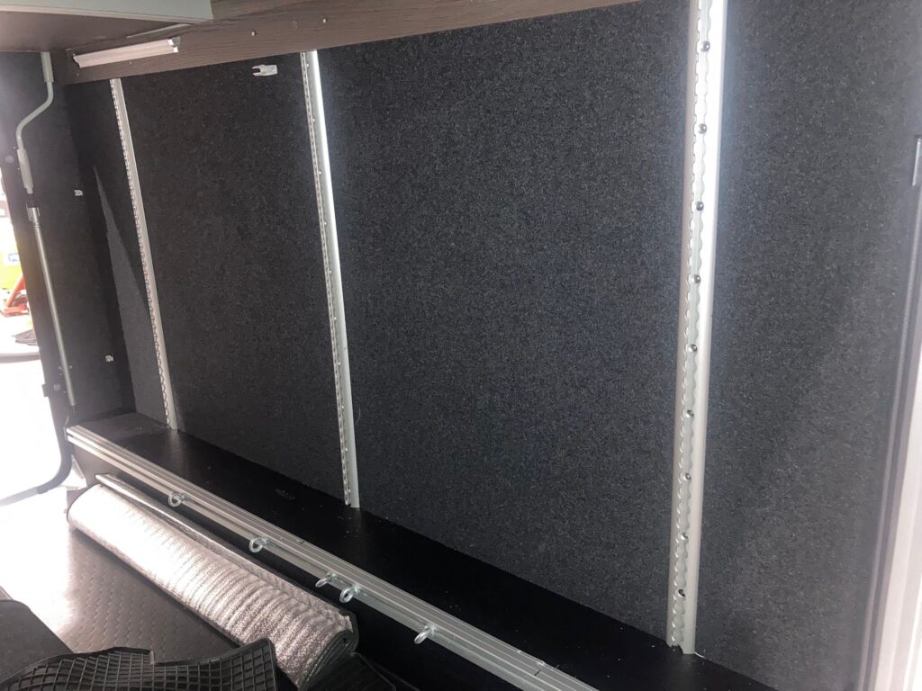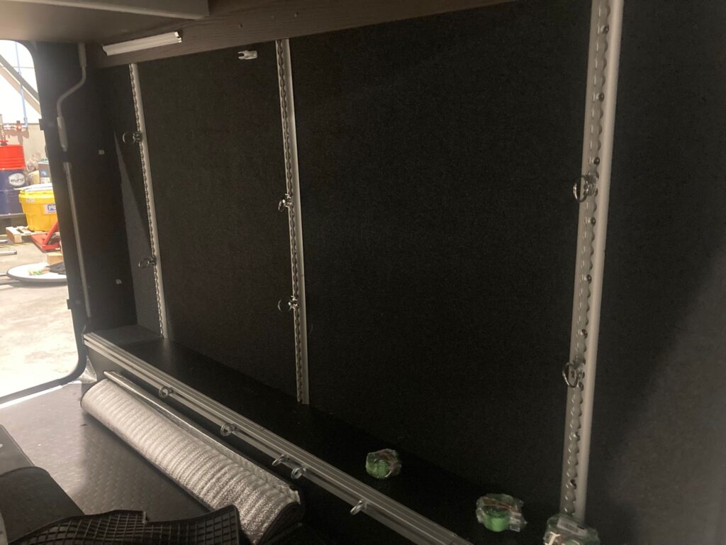 De eigenaar van deze camper wil in zijn garage bagage kunnen zekeren. Daarvoor hebben wij bindrails gemonteerd tegen de wand.
