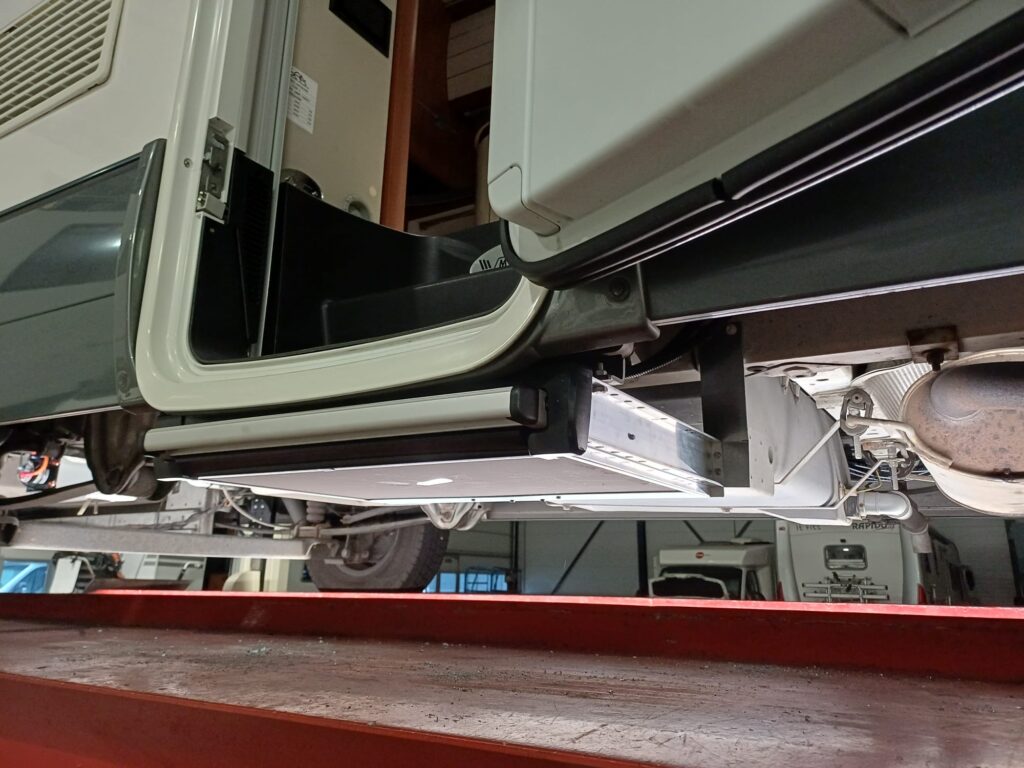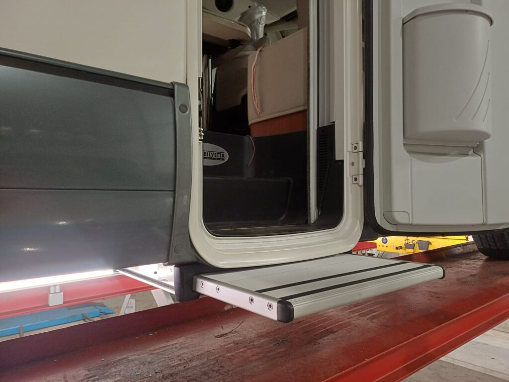 Elektrische opstap op camper monteren Deze camper heeft een nieuwe elektrische opstap gekregen Opstap gemonteerd Opstap gemonteerd Opstap gemonteerd, inclusief bediening