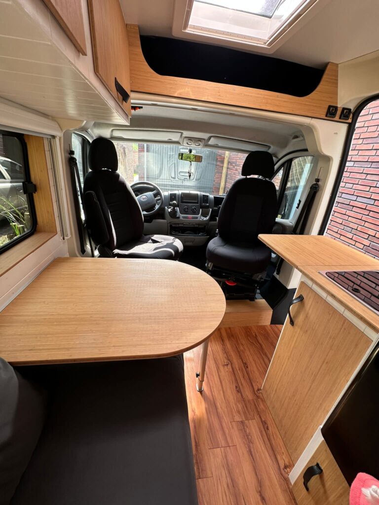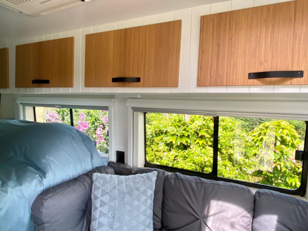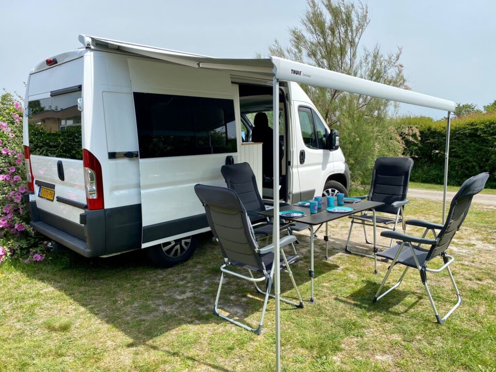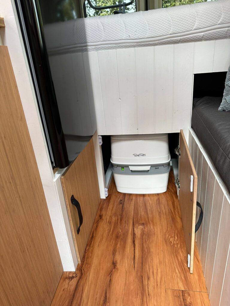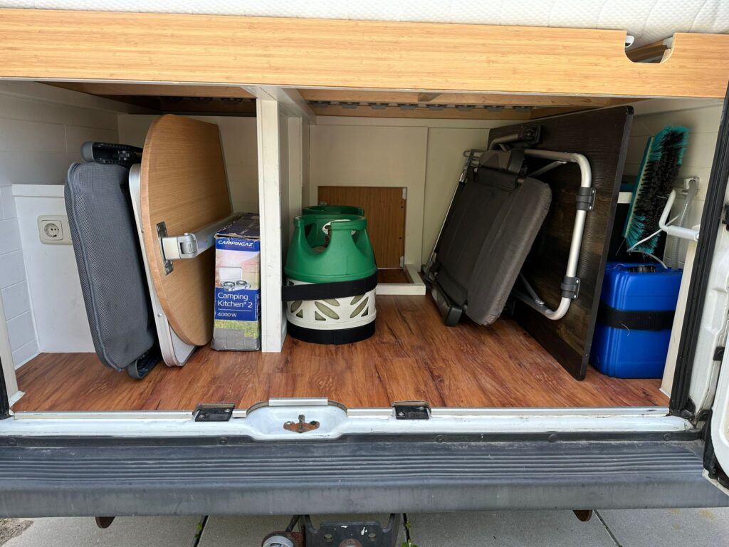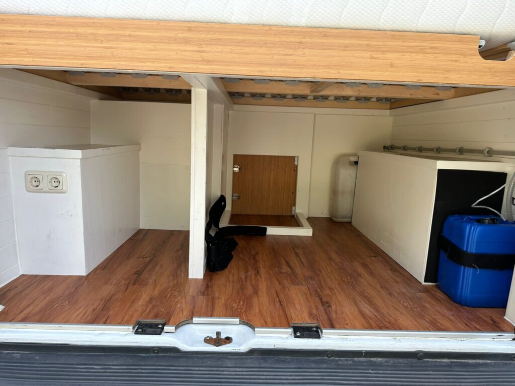 • 2 persoonsbed met bergruimte eronder bereikbaar via de achterdeuren