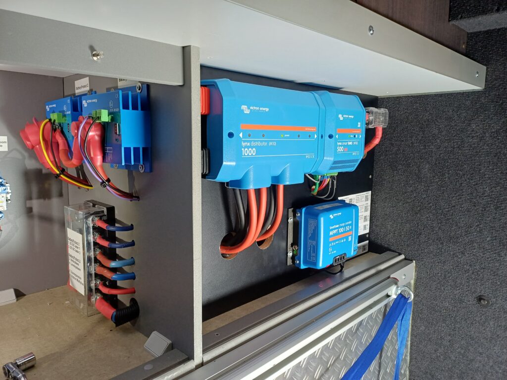 Deze wordt beheerd door een Lynx Smart BMS NG met Lynx Distributor, waarbij elke accu afzonderlijk binnenkomt en gezekerd is voor maximale veiligheid en overzicht.