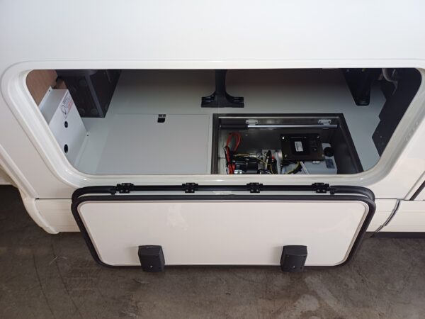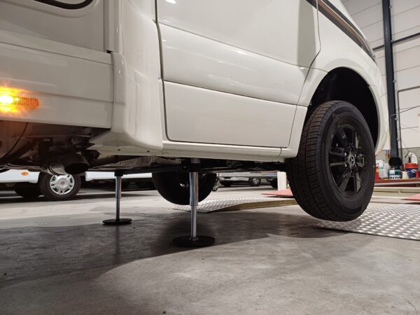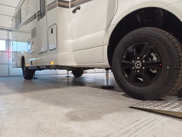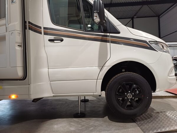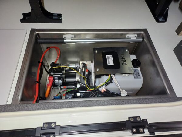 Voor deze gloednieuwe Carthago camper hebben wij een compleet hydraulisch levelsysteem van HPC Hydraulics opgebouwd. De pomp is netjes weggewerkt in een roestvrijstalen bak onder de camper, toegankelijk via het bagageluik – strak én functioneel!