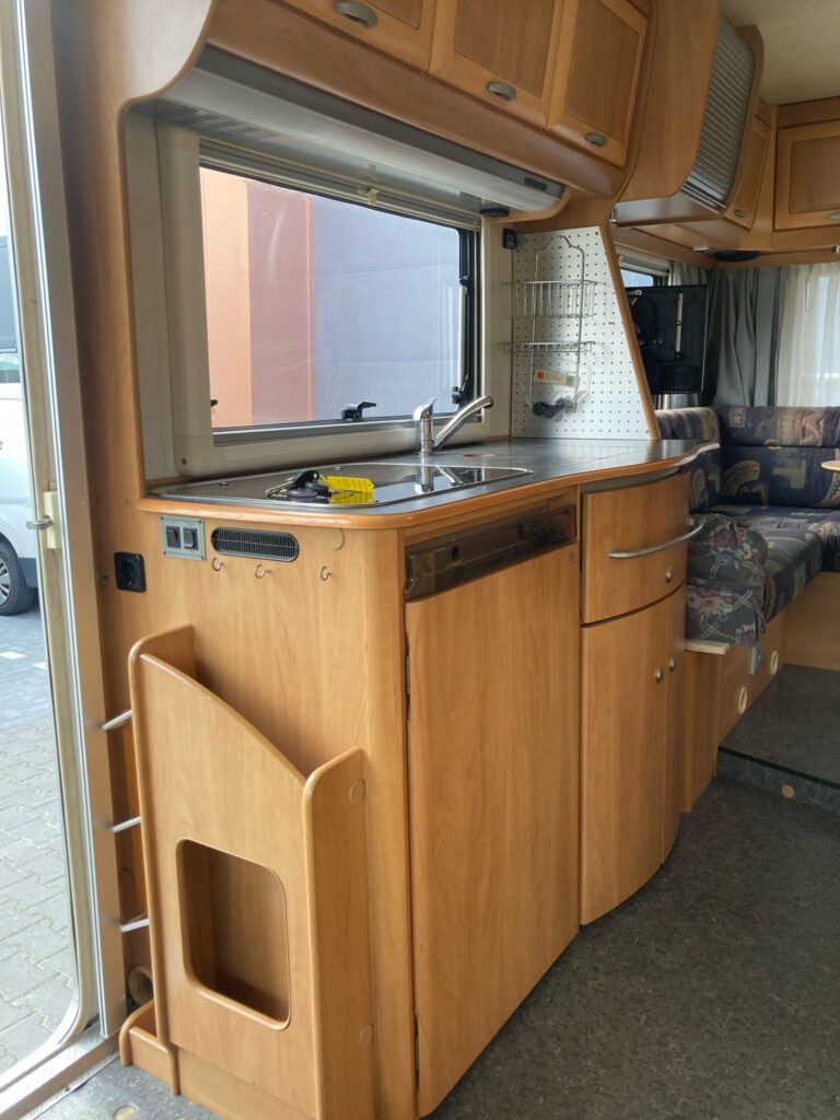 Keuken met 3-pits gasstel en dubbele spoelbak