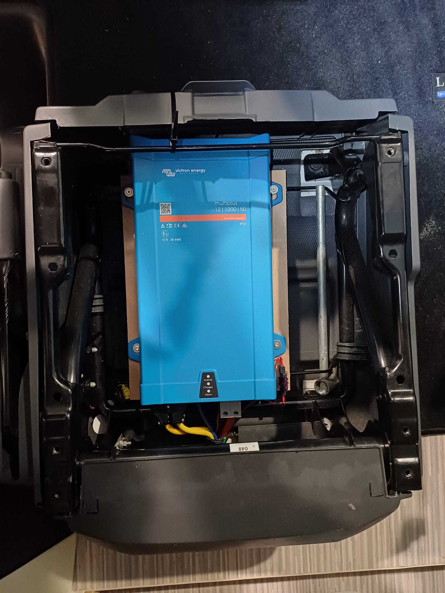 Inbouw Multiplus 12 1200 50 onder de stoel In deze Ducato is een Victron Multiplus 1200 onder stoel ingebouwd.