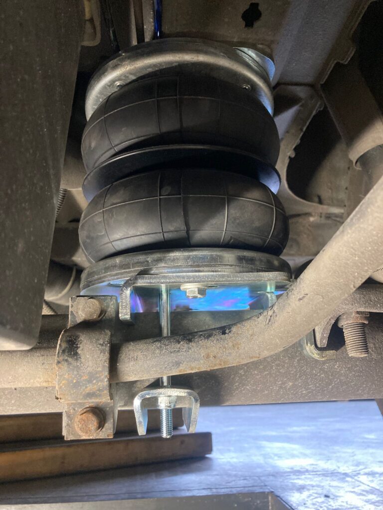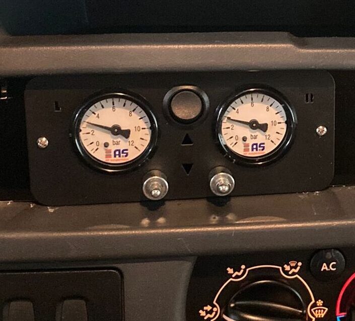 Voor meer comfort tijdens het rijden hebben we onder deze camper luchtvering geplaatst met klokken in het dashboard.