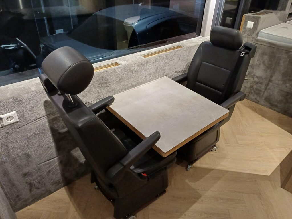 Verrijdbare stoelen met wegklapbare tafel