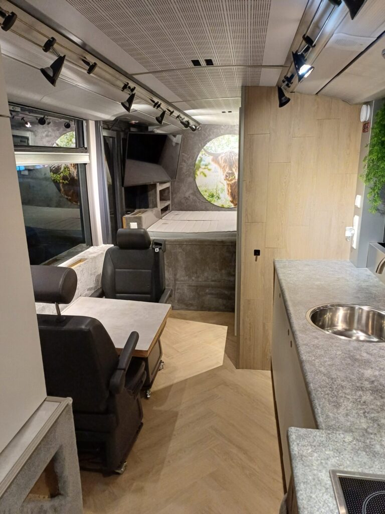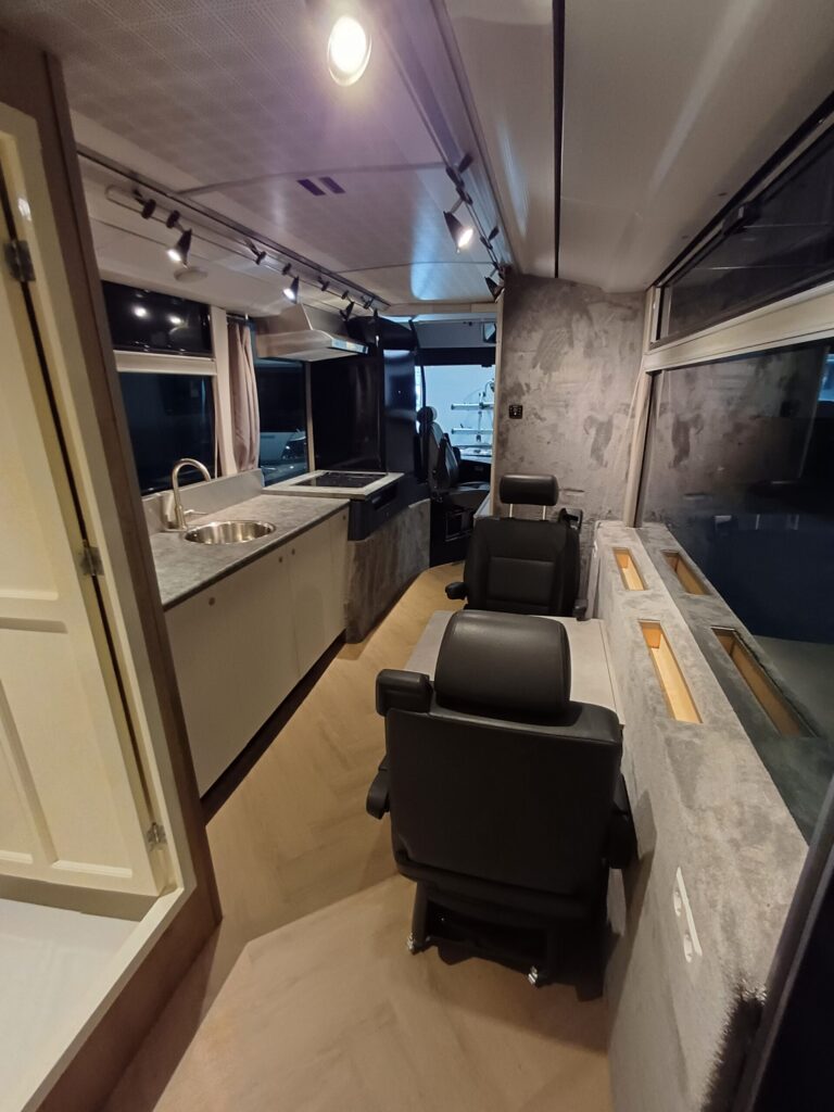 Deze stoere, luxe en custom-built camper is gebouwd om te kunnen genieten van het camper leven zonder de luxe van thuis te missen.