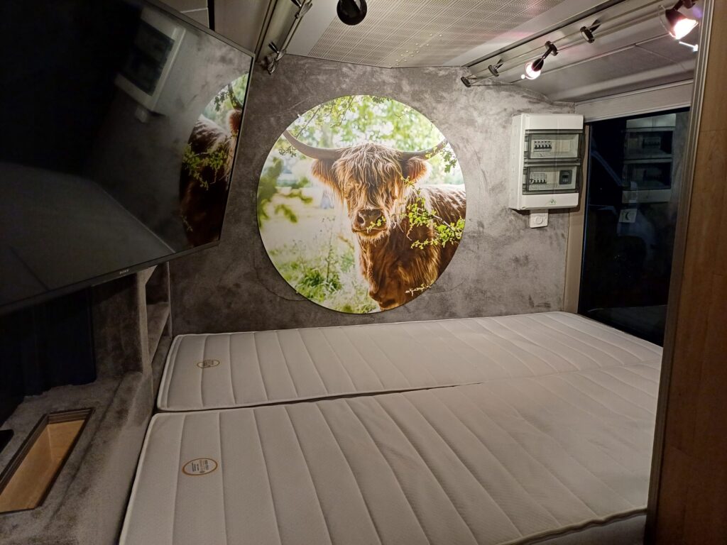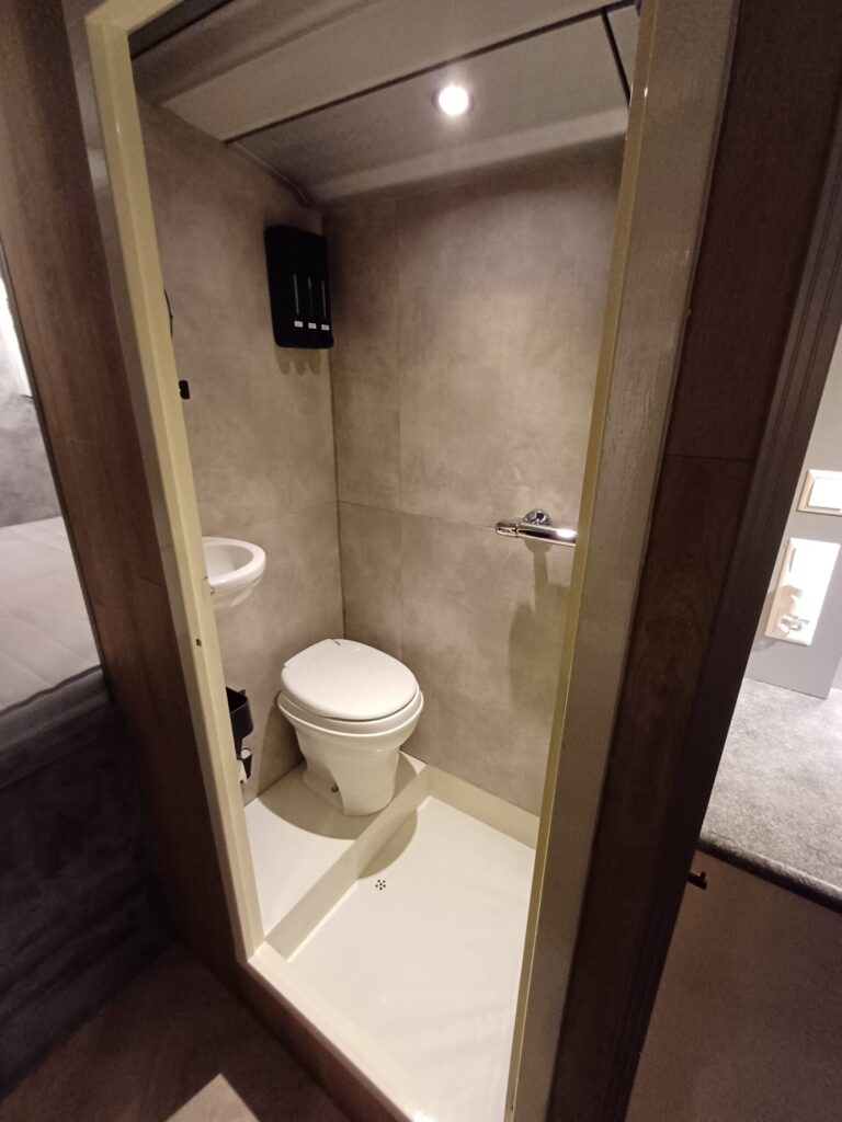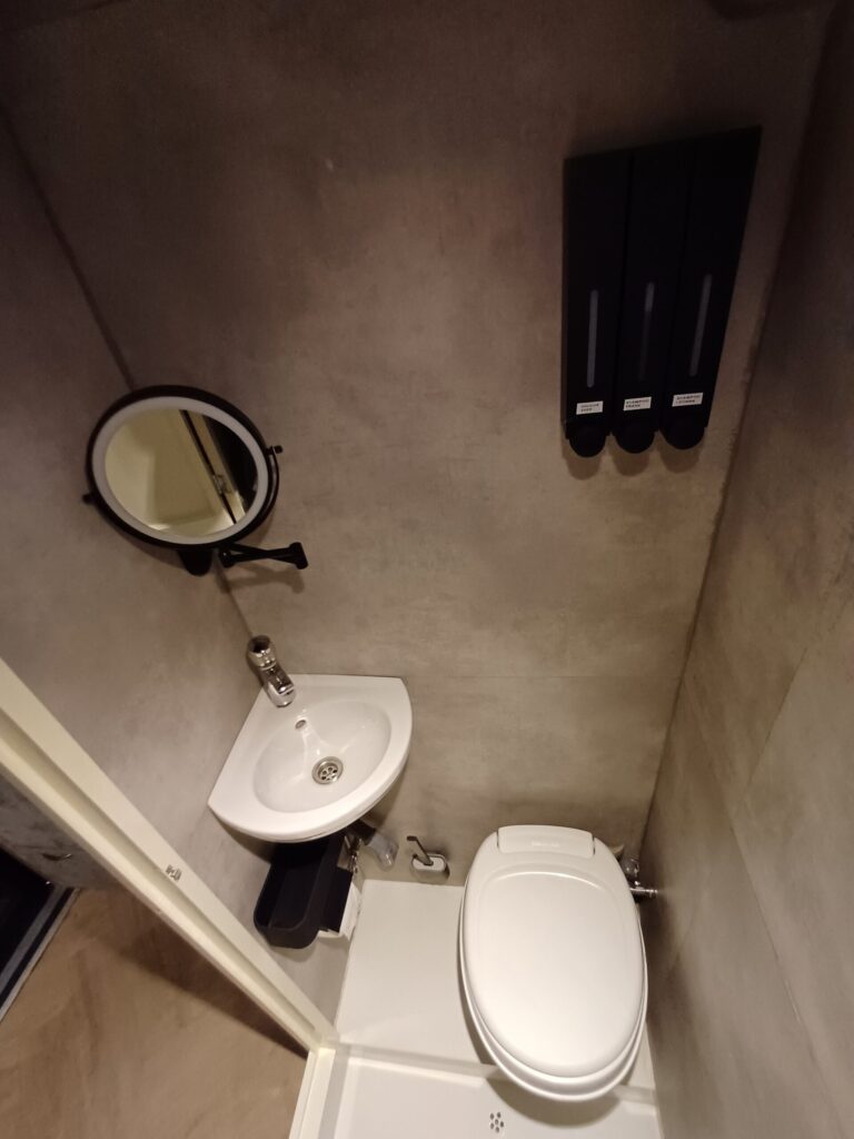 Naast het ruime bed van 200×160 is er een badkamer met wasbak, ruime douchecabine en een toilet.