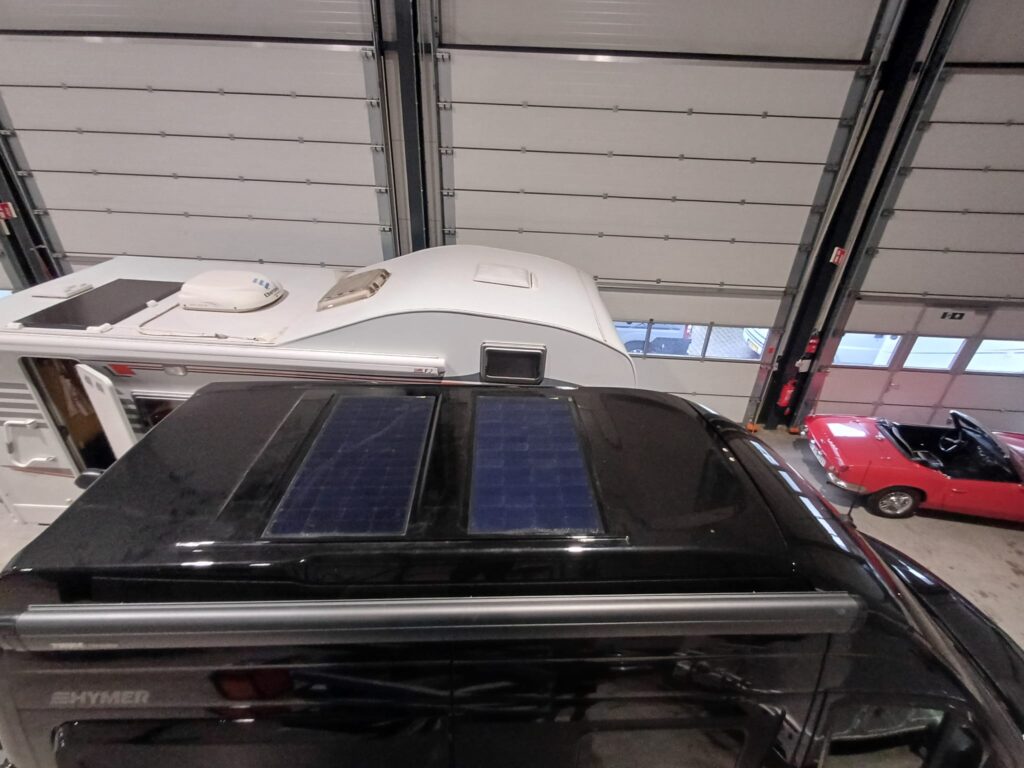 Op deze hymer hebben we 2 SUNBEAMsystem Maxa 109W Flush Black zonnepanelen gemonteerd. Geen kabels in het zicht!